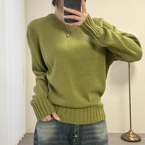 [다잇템]여자 베이직핏 일상룩 라글란 V넥 FW 니트 (41086527A)