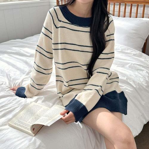 나그랑 데일리 배색 줄무늬 니트 미니 원피스