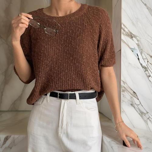 [다잇템]여자 라운드 비침 SS 반소매 라글란 니트 (32914347A)