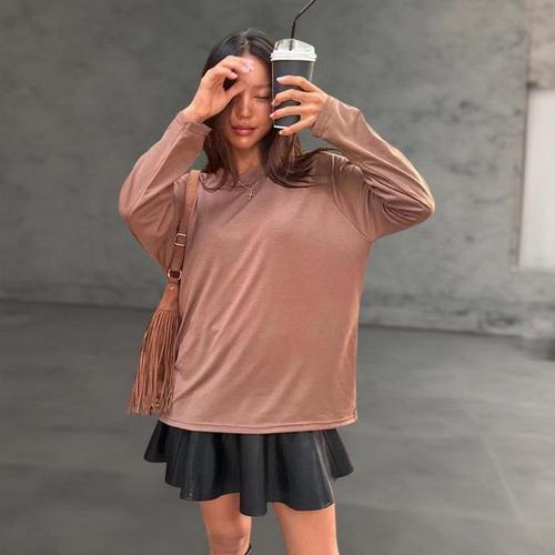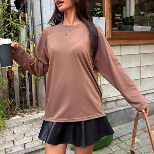 [다잇템]여성 팝콘 라글란 U넥 덤블 긴팔티 가을용 (41300937A)