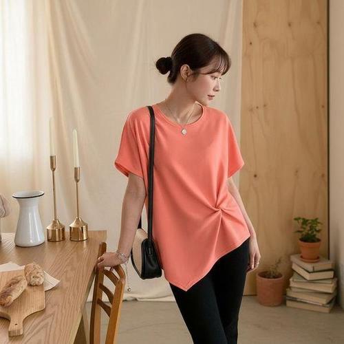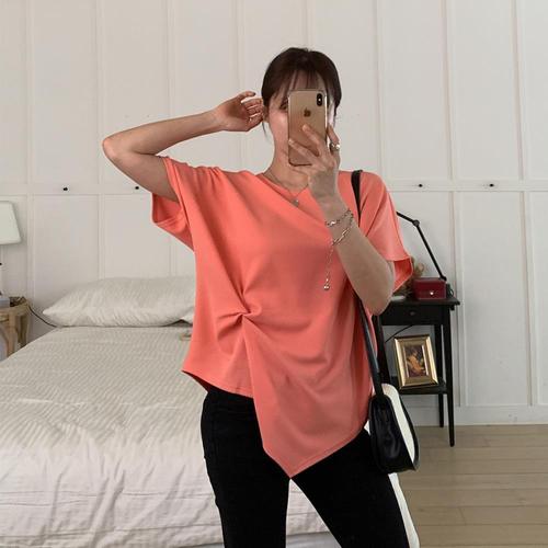 [옷자락] 여성 신축성 루즈핏 언발란스 라운드넥 나그랑 티셔츠