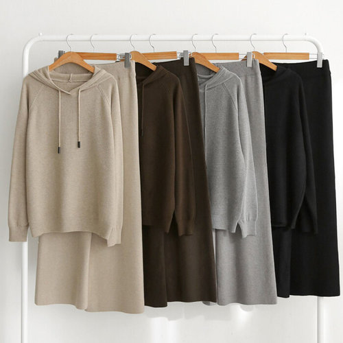 [옷자락] 여성 나그랑 후드티와 밴딩 일자팬츠 세트