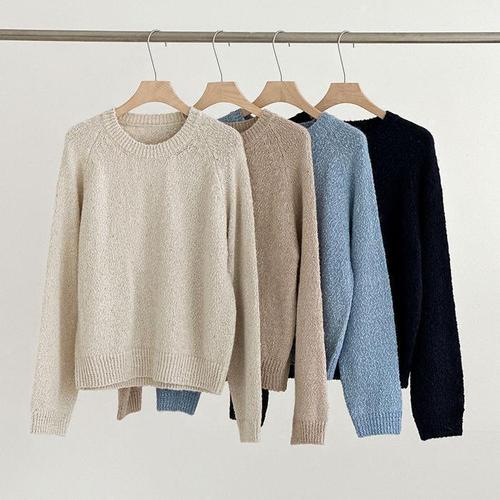[옷자락] 여성 절개 나그랑 쭈리 라운드넥 무지 면 봄 맨투맨