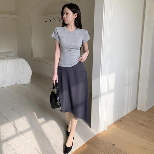 [옷자락] 여성 슬림 핏 세미크롭 나그랑 반팔 티셔츠
