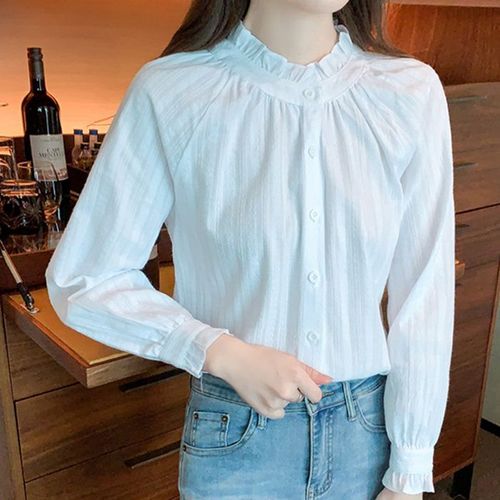 나바바 / NB3025 무지 프릴 헨리넥 긴팔 블라우스