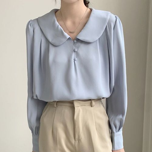 나바바 / NB3018 러블리 무지 둥근 카라 긴팔 블라우스