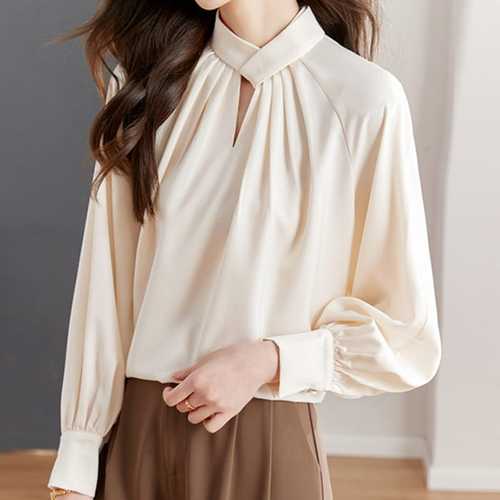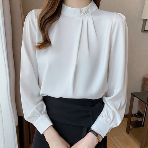 나바바 / NB3012 우아한 세련미 셔링 스탠드칼라 긴팔 블라우스
