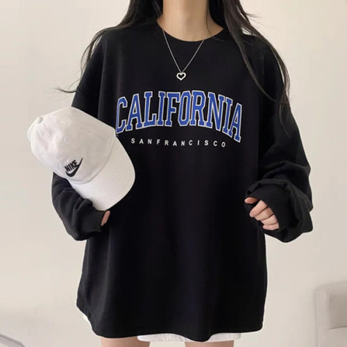 나바바 / NT2977 여성 레트로 프린팅 긴팔 후드 티셔츠