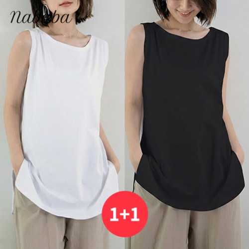 나바바 / NT3225 여성 1 + 1 무지 루즈핏 언발란스 민소매 티셔츠