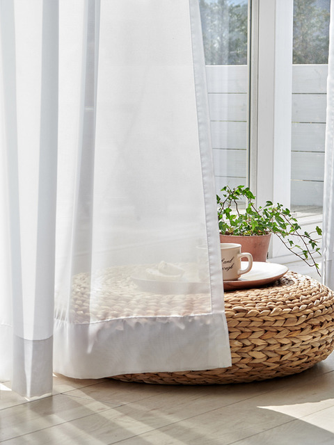 바닐라화이트 형상기억 차르르 쉬폰커튼 나비주름