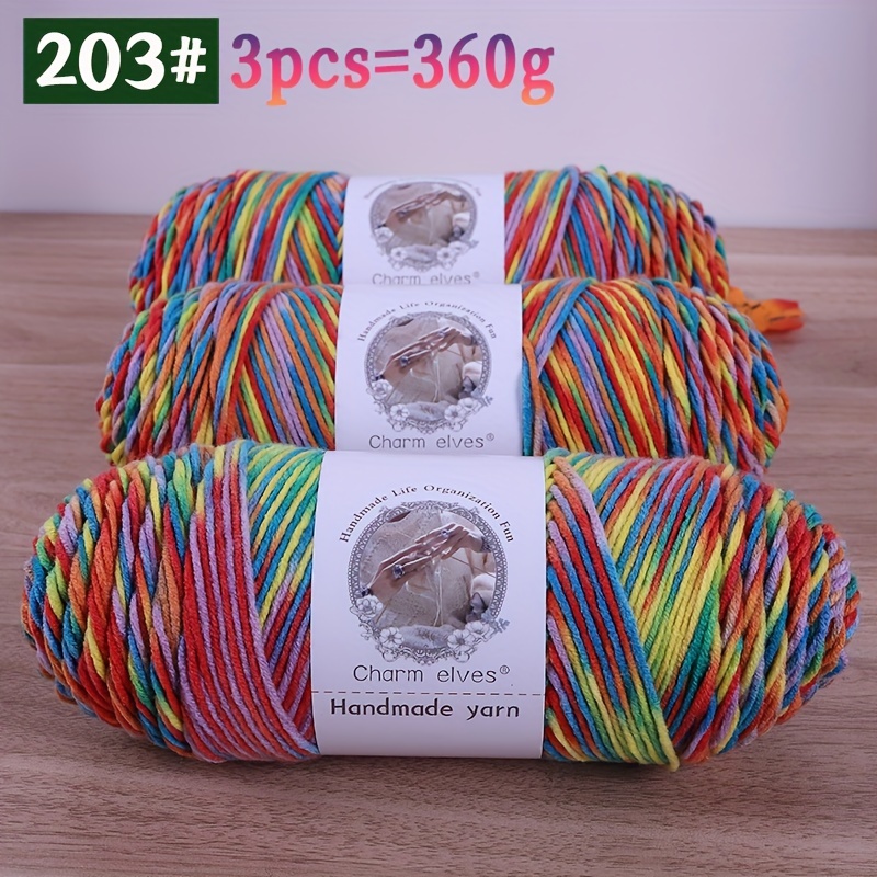 TEMU 타이다이 무지개 그라데이션 실, 수제 뜨개질 DIY 키트, 꽃무늬 스웨터, 모자, 스카프 제작용, 팩당 3볼
