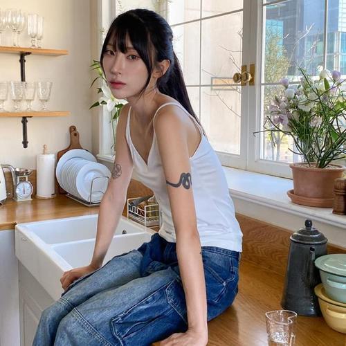 [다잇템]여성 캡내장 U넥 내의 탑 탱크 끈나시 (20242586A)