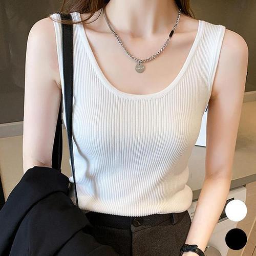 [다잇템]여성 슬리브리스 내의 골지 U넥 티셔츠 (32247720A)