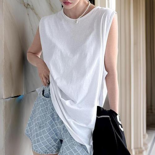 [다잇템]여자 내의 슬리브리스 무채색 코튼 라운드 나시 (32643069A)