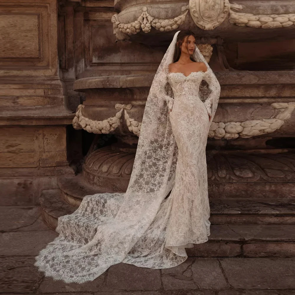 도쿄 맞춤형 화이트 A라인 웨딩드레스 스파게티 스트랩 민소매 레이스 브라이덜 가운 코트 트레인 우아한 웨딩드레스