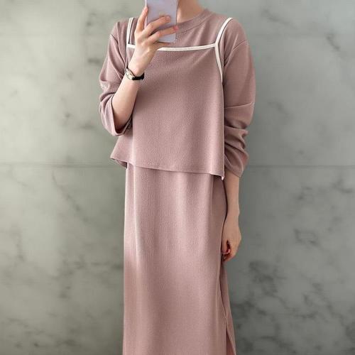 [다잇템]여성 코디 슬리브리스 티셔츠 롱슬리브 세트 (41040768A)