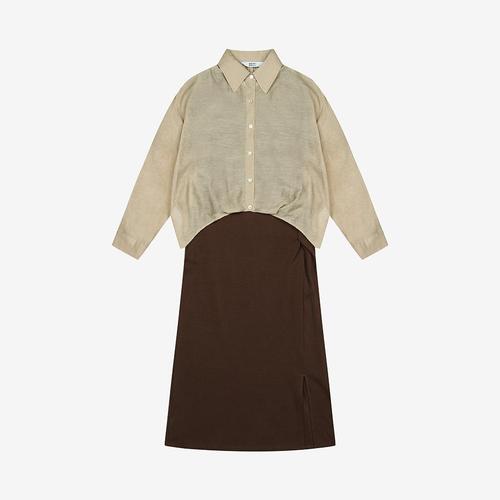 닥스 여성 [[24FW]] DLTS4D791I2 [가격인하][SET] 베이지 7부소매 셔츠&DD로고 프린트 민소매 티셔