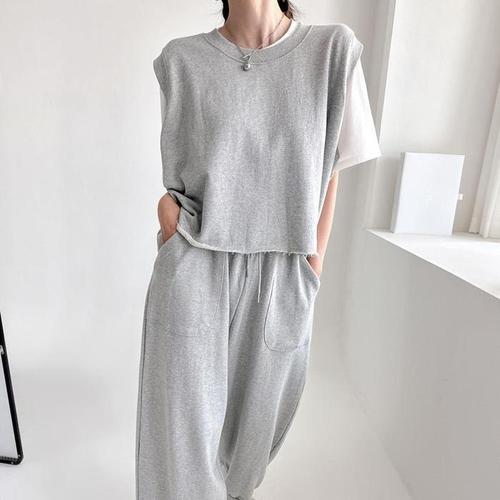 [다잇템]여성 슬리브리스 캐쥬얼 페미닌 하프팬츠 세트 (41095326A)