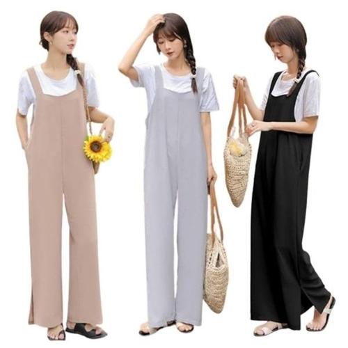 멜빵바지 와이드 오버롤 점프수트 데일리 민소매 여성 여름