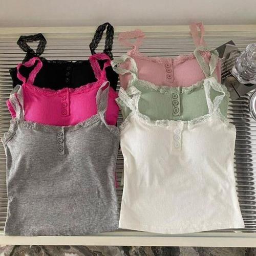 [셀러허브_여성트랜드패션]ONM 여성 티셔츠 레이스 단추 민소매 티셔츠