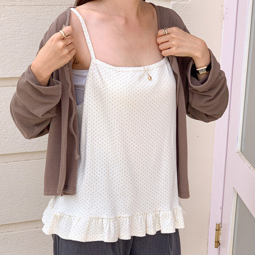 옷자락 / 여자 프릴 도트 이너티 빅사이즈 스판 골지 끈 나시