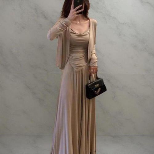 [신상오픈런]여성 슬림핏 셔링 나시와 긴팔 가디건 세트