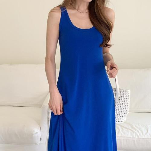 [다잇템]여자 파랑색 잘록 슬리브리스 SS 롱원피스 (16001041A)