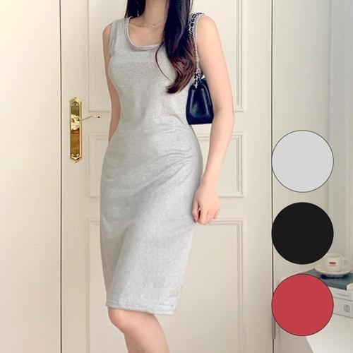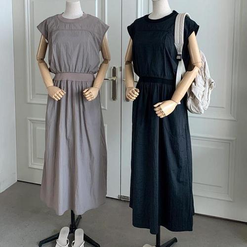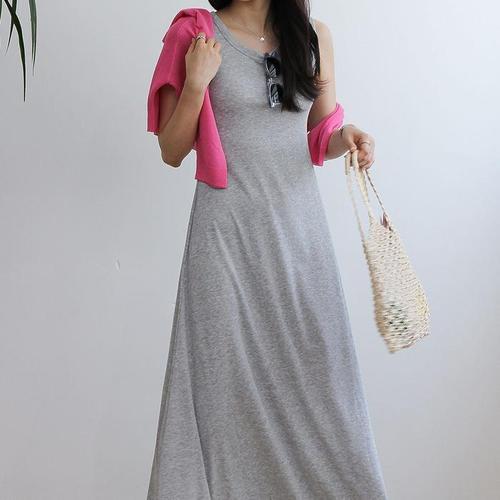 [다잇템]여자 슬리브리스 데일리 민무늬 편한 롱원피스 (15806171A)
