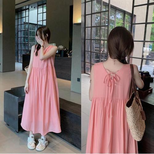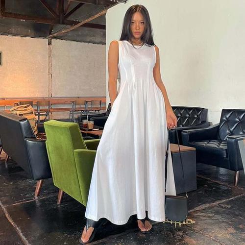 유럽과 미국은 봄과 여름에 심플한 민소매 서스펜더 드레스를 입고, 뒷모습이 새어나오는 섹시한 롱스커트와 넥이 돋보입니다.