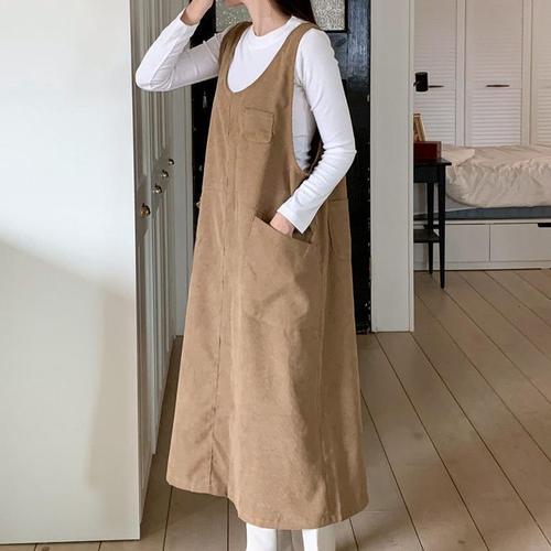 J2K 멜빵치마 롱 원피스 코디 겉옷 외출 데이트 나들이 패션
