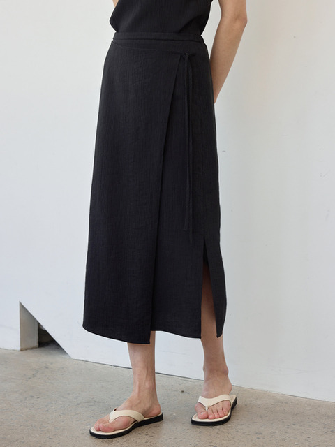 [히이크] 텐셀 크리즈 랩 스커트_ 블랙