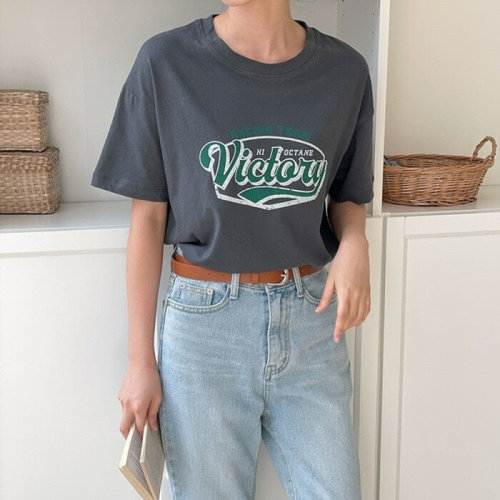 [다잇템]여성 박시핏 코튼100 나염 필기체 U넥 반팔티