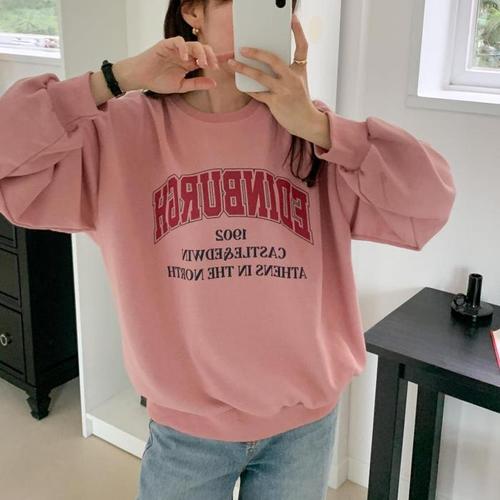 [다잇템]여자 FW 박시핏 분홍맨투맨 나염 맨투맨 (19145106A)