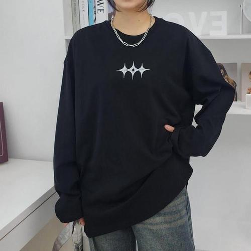 [다잇템]여자 검정긴팔티 빅사이즈 나염 아가일 티셔츠 (18646484A)