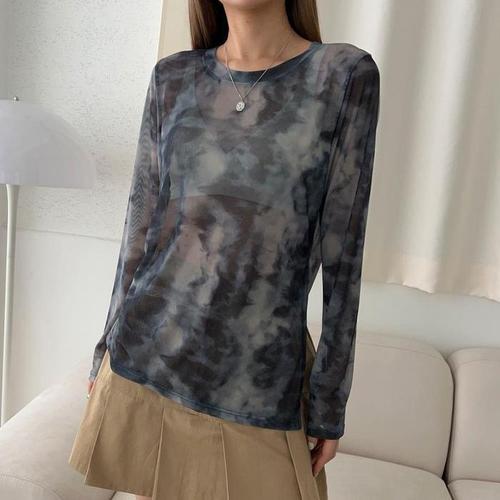 [다잇템]여자 레이어드용 물감나염 비침 잔주름 티셔츠 (16672463A)