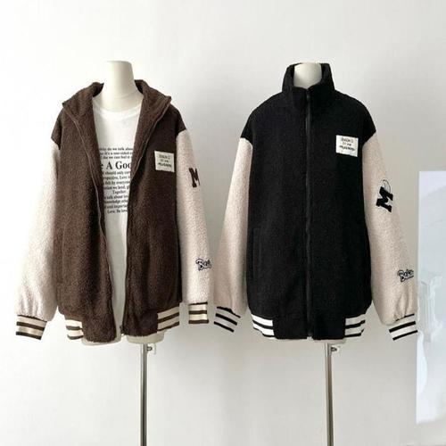 여성 귀여운 포인트 기모 오버핏 야구점퍼