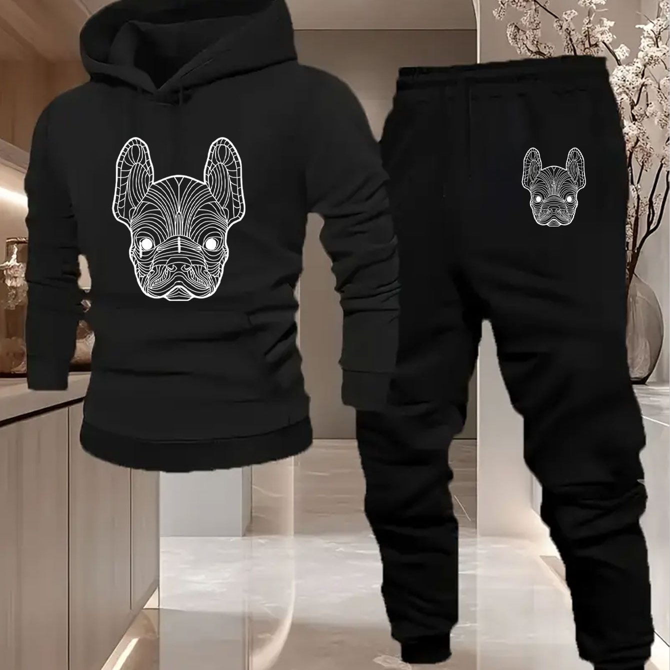 TEMU 남성용 프렌치 불독 그래픽 후드 스웨트셔츠 & 팬츠 세트 - 도시 스트릿웨어 스타일, 부드럽고 따뜻하며 편안한 100% 폴리에스터 소재, 눈길을 사로잡는 프린트 디자인, 후드티, 가을과 겨울용 긴 바지, 힙합 트랙수트 세트