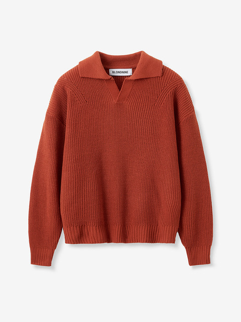 [블론드나인] 숄더 포인트 오픈 카라 리브 니트_오렌지