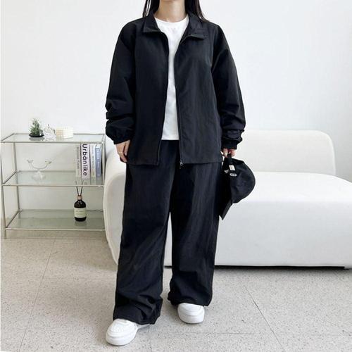 [179st.w]GQQ SF1033W-SF1034W 여자 오버핏 하프넥 집업 바람막이 나일론 와이드 바지 세트
