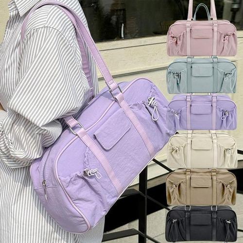 TEMU 가벼운 나일론 대용량 캐주얼 짐 여행 가방, 보스턴 스타일 지퍼 숄더백 (스포츠 및 요가용), 짧은 여행에 적합