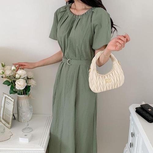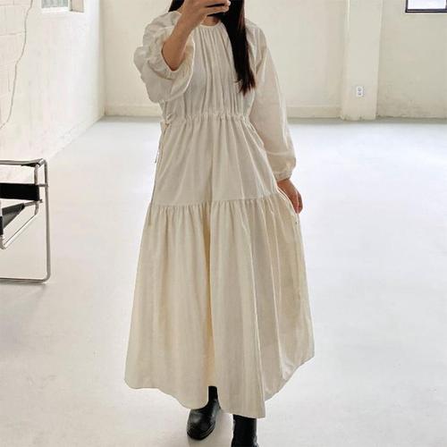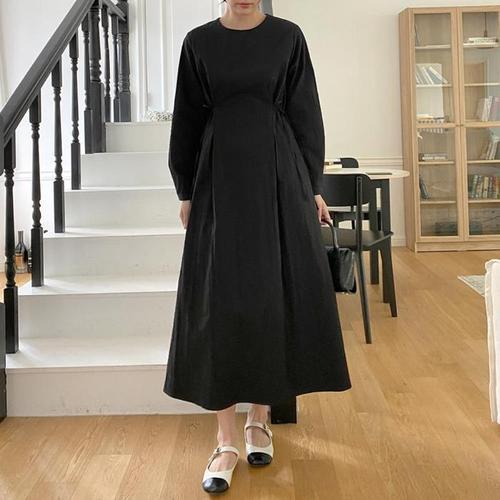 고급 플리츠 퍼프 원피스 여리핏 롱원피스 체형보정