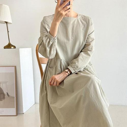 [다잇템]여자 미니멀리즘 SS 셔츠형 나일론 롱원피스 (16005235A)
