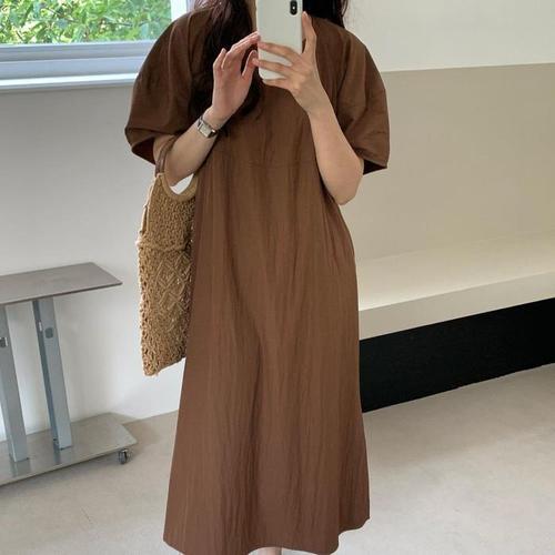[다잇템]여자 휘뚜루 벌룬반팔 나일론 롱원피스 (15728209A)