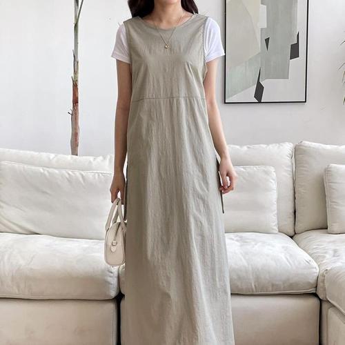 스테인 나이롱 벌룬 바스락 나시 롱 원피스