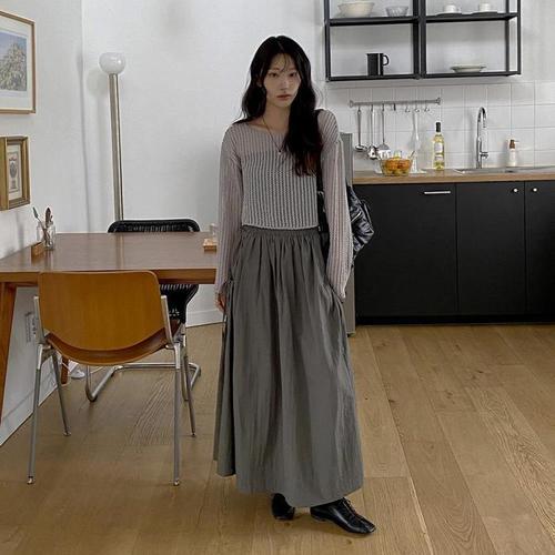[다잇템]여자 그런지 후레아 나일론 잔주름 롱스커트 (16576456A)