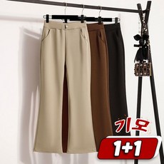 1+1 심플 부츠컷 팬츠 데일리룩 빅사이즈 하이스웨트 여성용 가을 겨울 밴딩 나팔바지 슬림 심플 긴바지