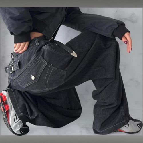 SAHINER 봄가을 여성용 하이웨이스트 부츠컷 와이드 빈티지 롱 데님팬츠 BNZ38