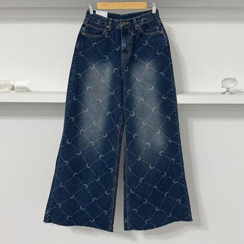 여성 나팔컷 달프린트 격자 약기모 청바지
