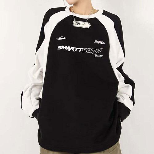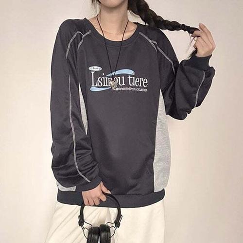 [셀럽하우스]남녀공용 KJTL5613 배색 맨투맨 스트릿 커플티 캐주얼