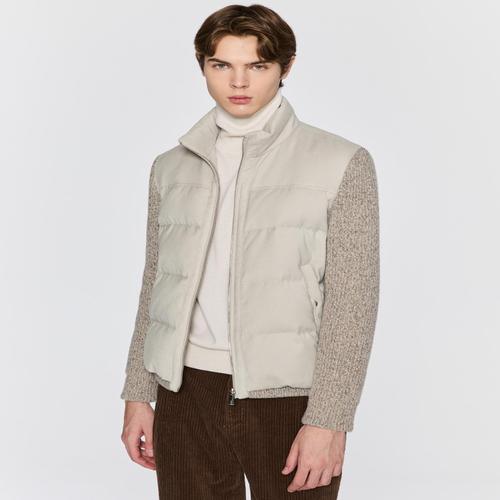 닥스 남성 베이지 Faux 스웨이드 니트 소매 구스다운 점퍼 (DMJU5D042I1)